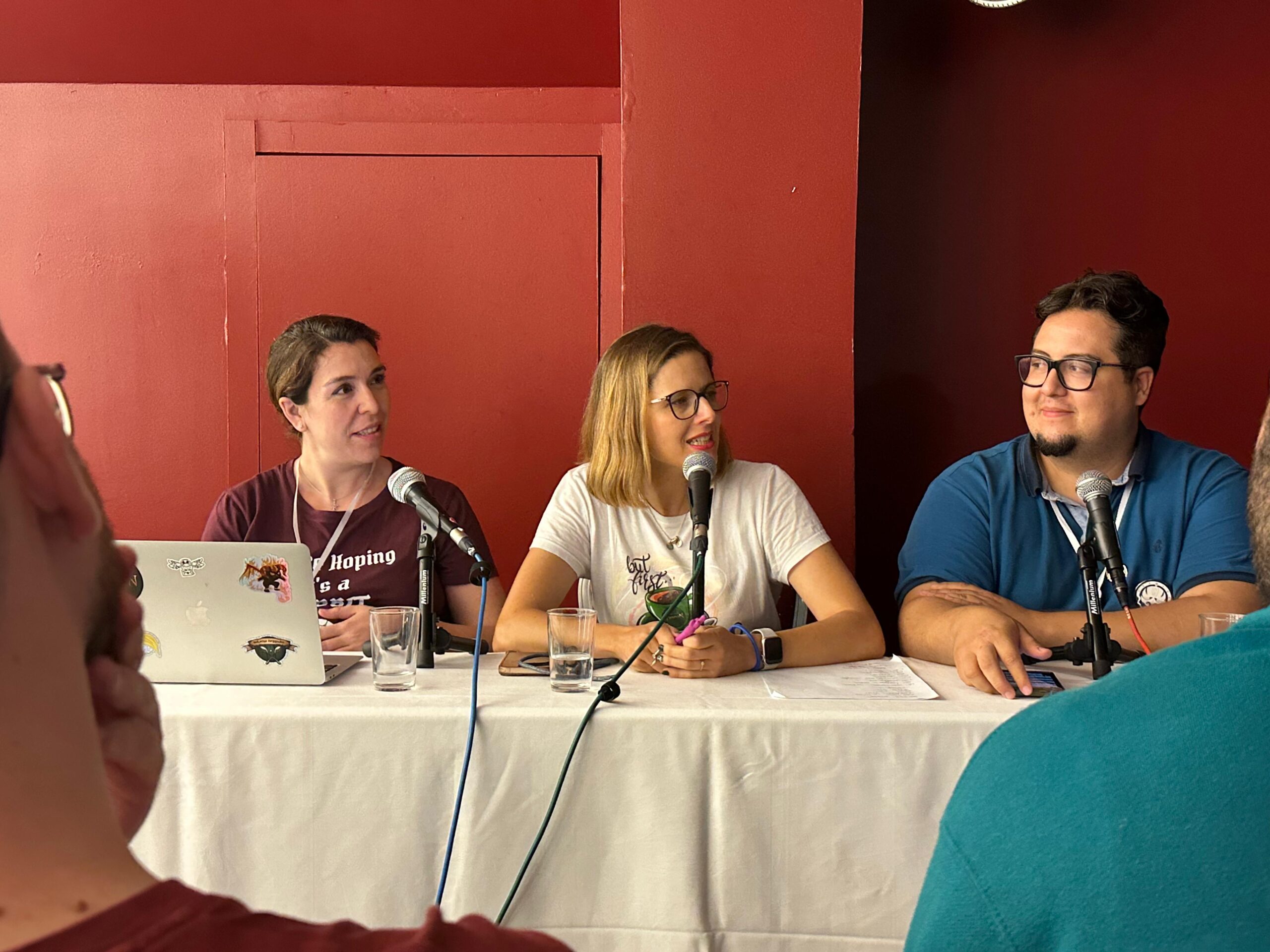 - Jose María «Findegil», Brian Sibley y Virginia de la Fuente (traductora), hablando de Tolkien.
