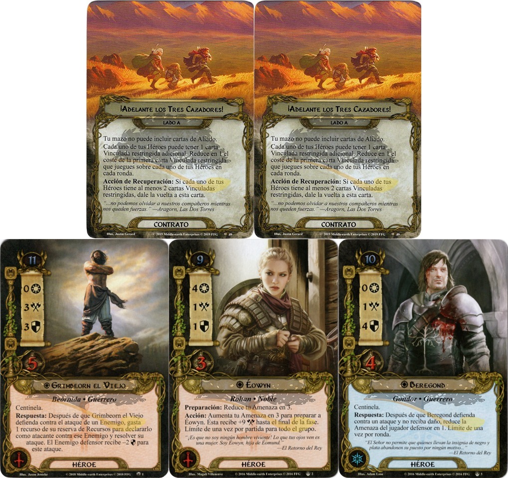 El contrato «¡Adelante los tres cazadores!» y los héroes Grimbeorn el Viejo, Eowyn (táctica) y Beregond (espíritu)
