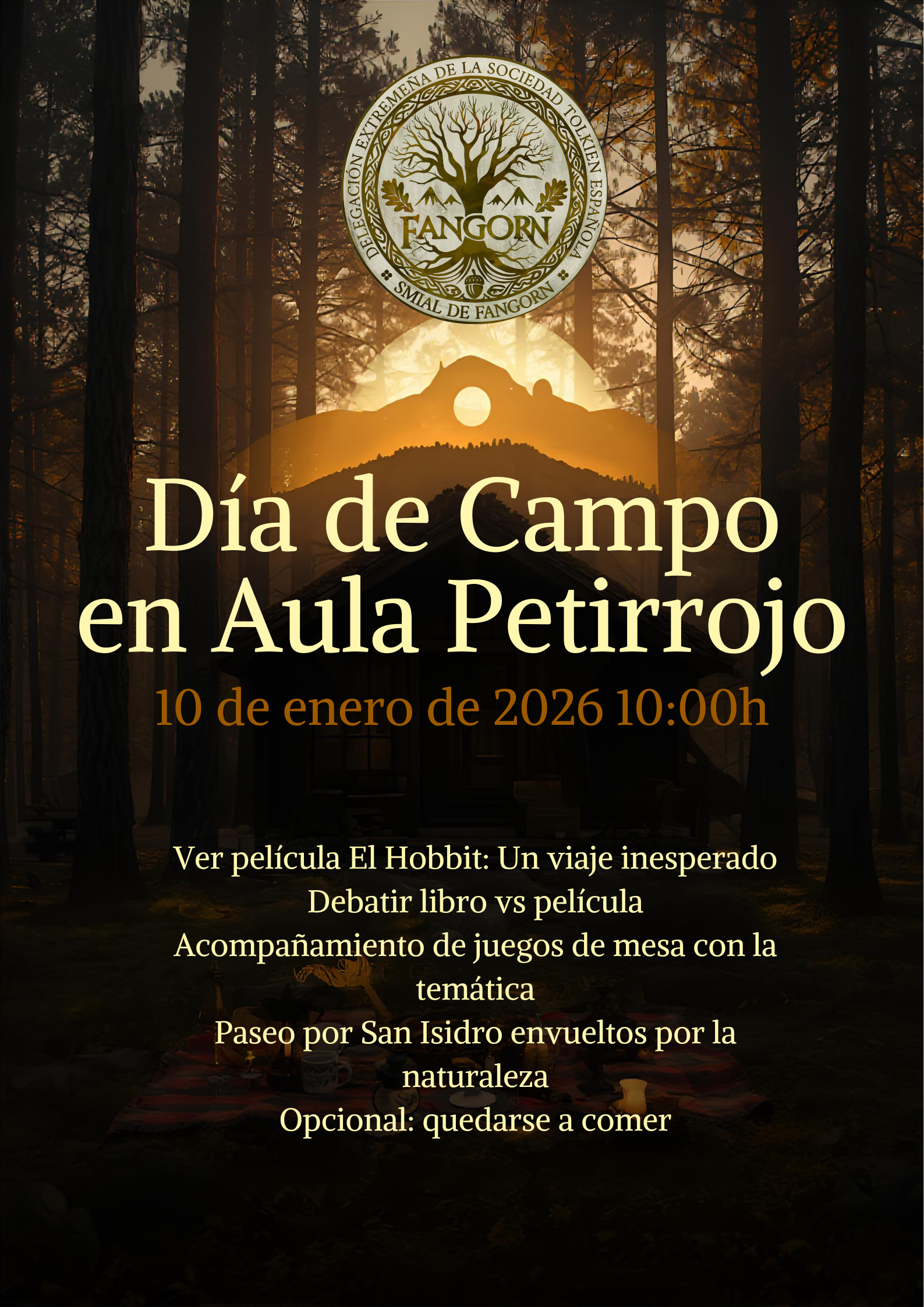 El pasado sábado 10 de enero, el smial de Fangorn realizó una actividad de lo más interesante: un día de campo en el Aula Petirrojo (Parque San Isidro, Badajoz). Los habitantes del smial se reunieron para visualizar la película El hobbit: Un viaje inesperado. El club de lectura «No te apresures» se ha dividido los capítulos de El hobbit para leer primero y ver la película correspondiente después. De esta forma pudieron ver otra adaptación del libro ya que en el club se había comentado la novela gráfica.