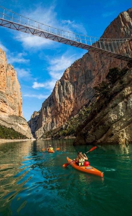 La otra gran actividad que estamos preparando es una excursión por el Congost de Mont-rebei, un desfiladero espectacular por el que corre el río Noguera-Ribargoçana. Se puede hacer la ruta a pie (por un camino excavado en la roca que cruza diversos puentes) o en kayak (os sentiréis como los miembros de la Compañía cruzando los Argonath con paredes de piedra calcárea de unos 500 metros a lado y lado del río).