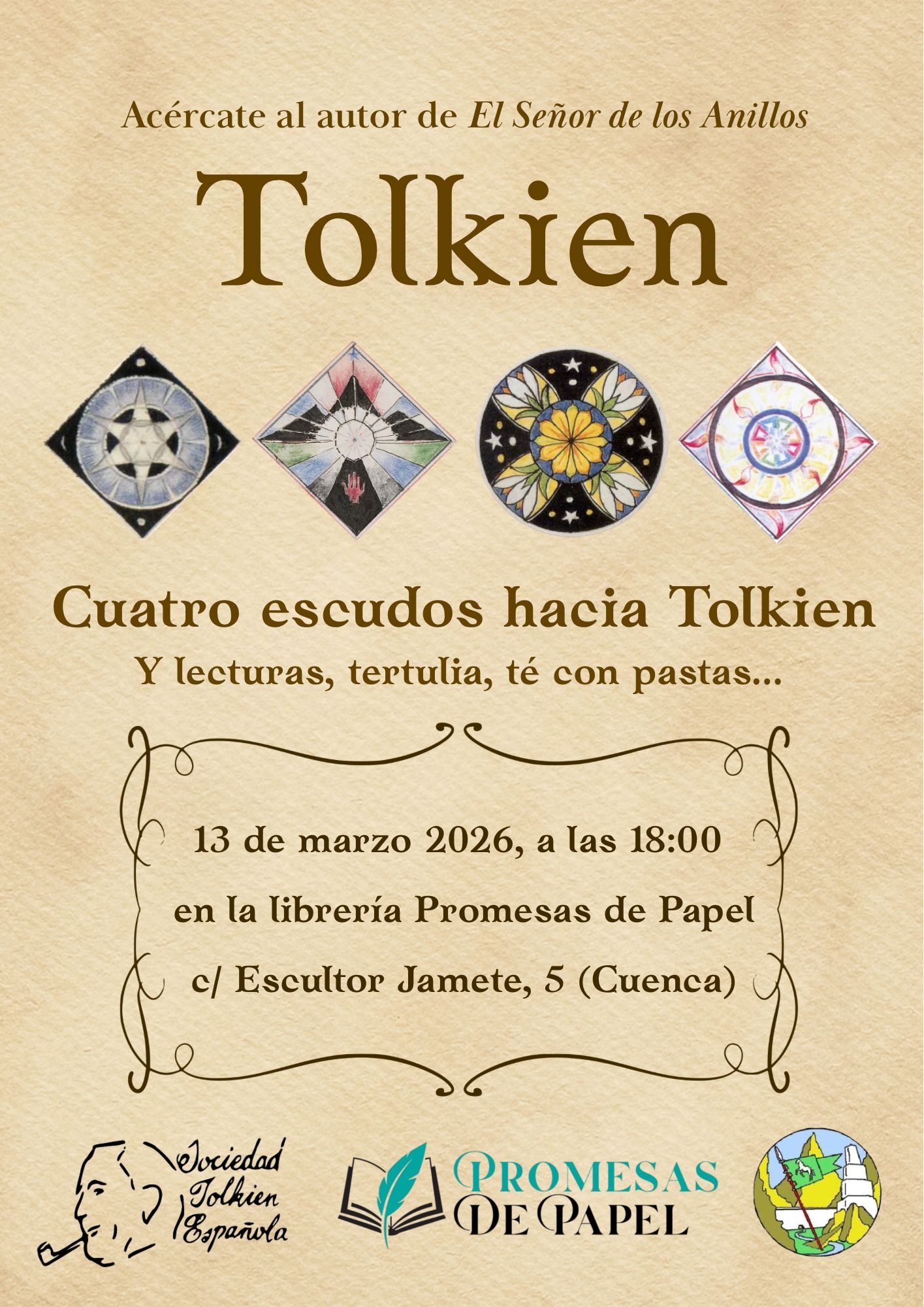 El Smial de Cuernavilla organiza una nueva actividad en Cuenca con una charla muy especial que incluye lecturas, tertulia, y lo más importante: hablar de Tolkien acompañado por un té con pastas en la librería Promesas de Papel. ¿Qué más se puede pedir?